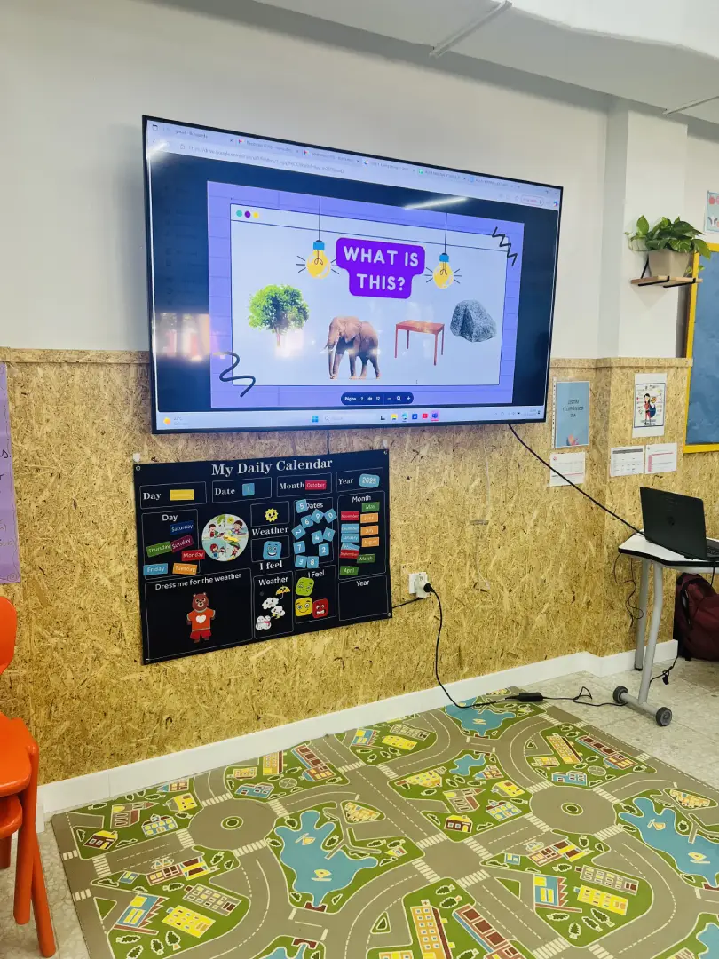 - Sustitución de proyectores por modernas pantallas de 75 pulgadas en varias aulas, apostando por recursos digitales más innovadores y prácticos.